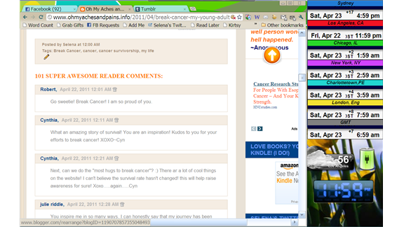Selena Inouye posted ablog poston OhMyAchesAndPains about cancer that received received 101 comments in 24 hours.
