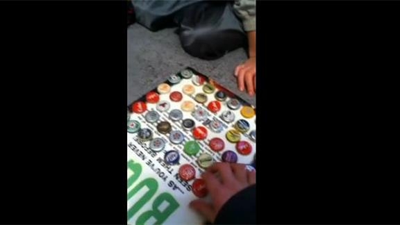 Tim and Joey put 77 bottle caps on a book.