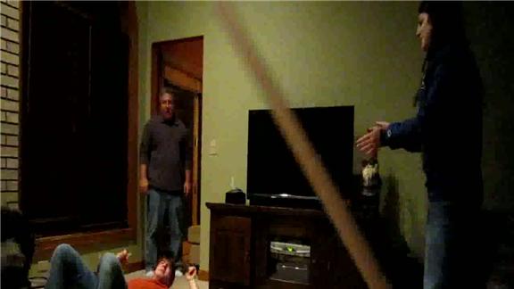 James Westfall let his friend drop a 99.5 inch cardboard tube on his torso.