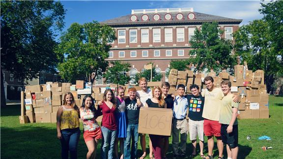 Laura D'Asaro and her fellow Harvard University students built a cardboard box fort made of 1,064 boxes. The cardboard box fort was displayed at the MAC Quad on Harvard’s campus. They set the record to support and promote recycling. Read more about the feat here.