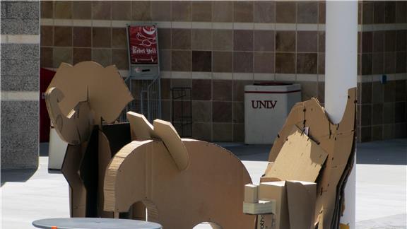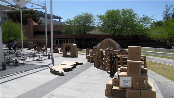 AAD 180 Architecture Students and Professor Glenn Nowak of the University of Nevada – Las Vegas along with the UNLV Rebel Recycling Program built a cardboard box fort made of 2,249 boxes.