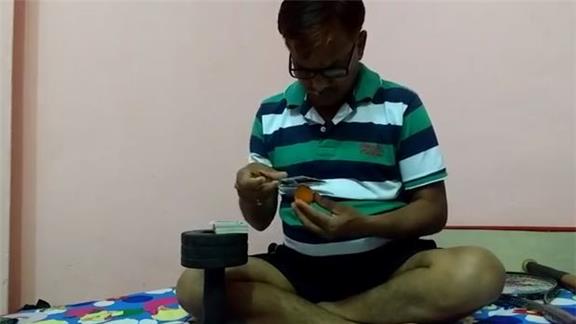 Suresh Gaur stacked 35 cards on a table tennis ball held in his hand in one minute.