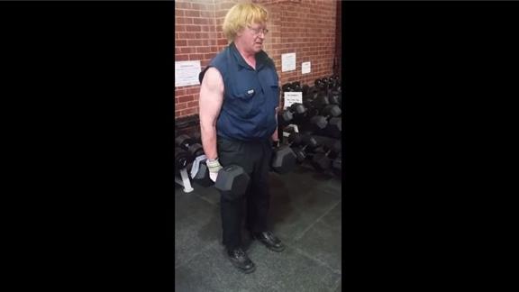 Joseph S. carried two 100-pound dumbbells for one minute, 29.84 seconds.