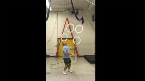 Most Catches Juggling Four Large Rings While Hula Hooping And Balancing A Large Ring On Forehead