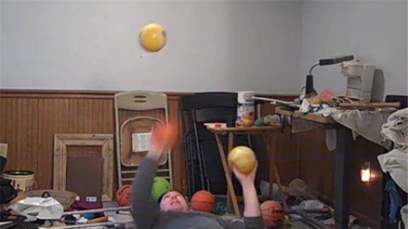 Most Catches Juggling Three Five-Pound Balls While Lying Down