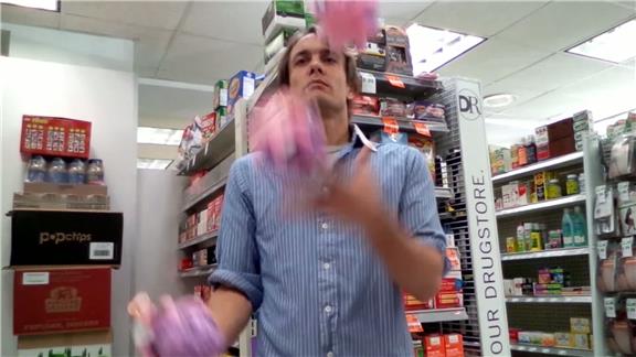 Seth M. completed 23 catches juggling three stuffed octopus toys.