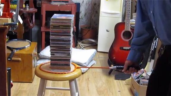 - stack of CD cases on badminton racquet must be held with one hand for at least 10 seconds
