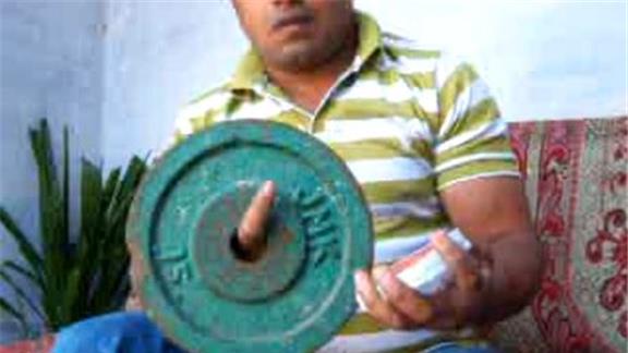 Kamal Aslam performed 79 Charlier card cuts in one minute while holding a 15-pound exercise plate on his index finger.