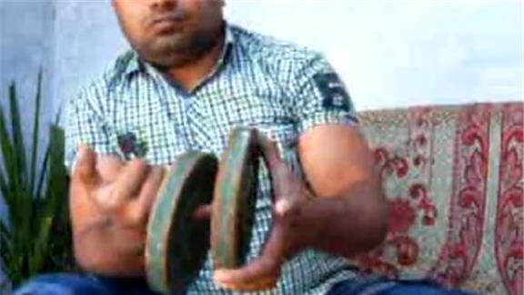Kamal Aslam performed eight Chen Ka card cuts in 30 seconds while holding two 5-pound exercise plates on his pinky finger.