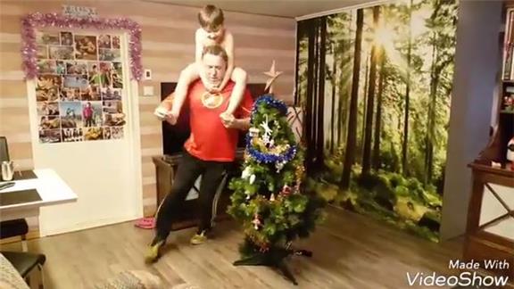 Thommy Ohlund circled around their Christmas tree 20 times in one minute while carrying Noa on his shoulders.