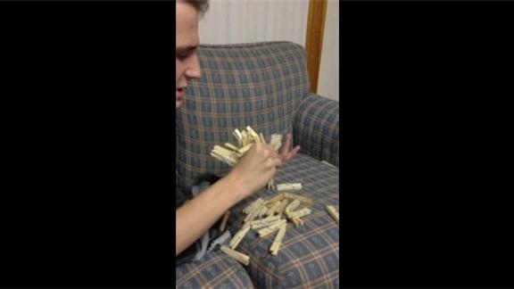 Mike M. attached 50 clothespins to his hand.