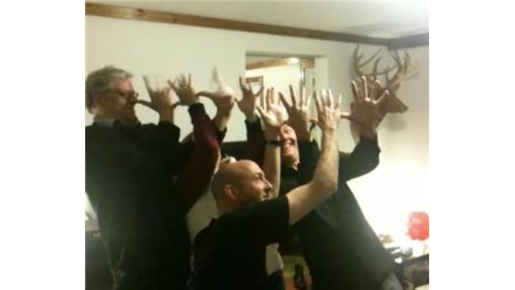 Monica Welsh, Sean Welsh, Greg Plum, and Gerald Mischke used eight hands to create the world’s longest cock a snook chain.