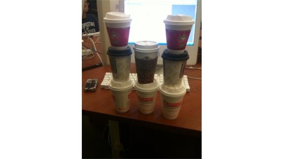 So I just put 9 empty coffee cups on a desk however I wanna place them and I get a record?
