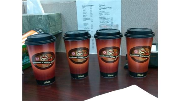Antone Drillon placed four empty coffee cups on his desk at once, a new world record. All of them were disposable cups from Circle K.