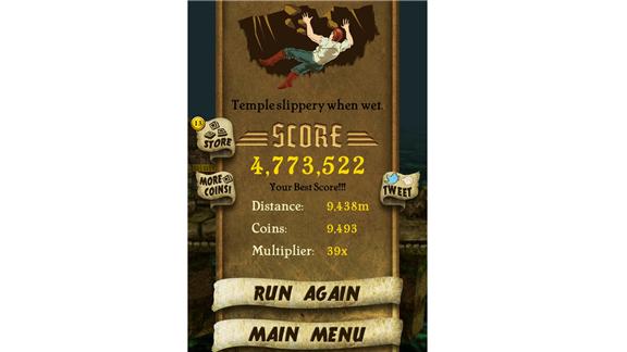 You have indeed made an error. Mine is a whole different category. The category which you have put me in is a TOTAL of coins collected within many many games of Temple Run. However my screen shows I am not in the Store. I have applied this record for "Most Coins IN A SINGLE GAME of Temple Run". If you could please fix this that would be very much appreciated! Thank you!