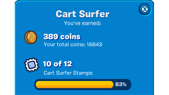 Mikey Dog earned 389 coins on Cart Surfer playing Club Penguin, a world record