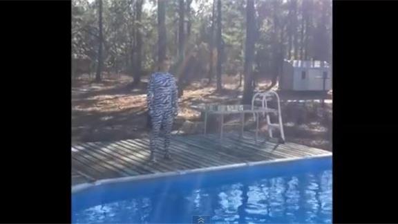 Lloyd W. performed a burpee exercise into a swimming pool with a temperature of 44 degrees Fahrenheit.