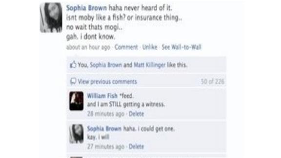 William Fish, Sophia Brown, and Matt Killinger collectively posted 226 comments on a Facebook wall post.