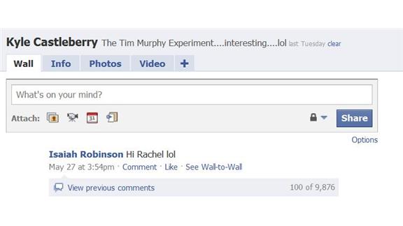 Kyle Castleberry has 9,876 comments on a Facebook wall post.