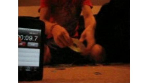 Ryan Buffett broke 8 compact discs in ten seconds.