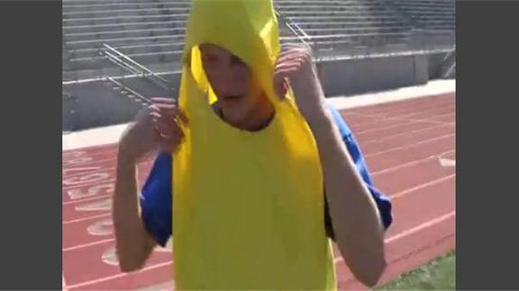 - must run 800 meters while wearing costume on a standard track
