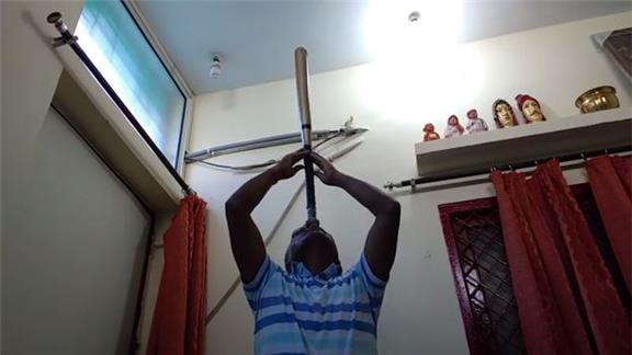 Suresh Gaur completed five 360-degree rotations in 37.75 seconds while balancing a baseball bat on his nose.