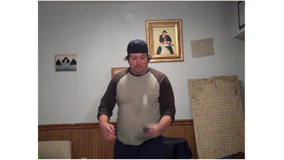 Brian Pankey completed eight 360-degree spins in 30 seconds while bouncing a table tennis ball on a hockey puck under an eight-foot ceiling.