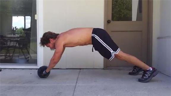 Alexander L. performed 120 consecutive abdominal wheel roll-outs from standing position.