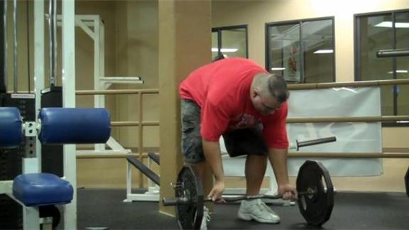 Just for clarification this is 107 lbs and Jason is using an EZ Curl Bar. A more appropriate title suggestion ..... Most Consecutive Arm Curls Using A 107-Pound EZ Curl Barbell