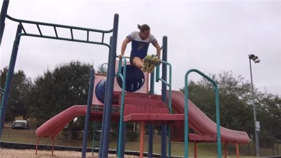 Alicia Weber performed 49 consecutive bar L dips.