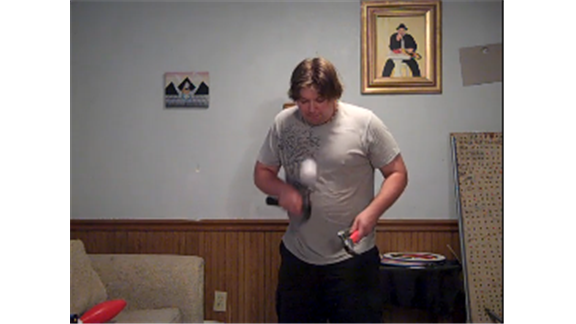Brian Pankey bounced a baseball between two claw grip hammers 48 times.