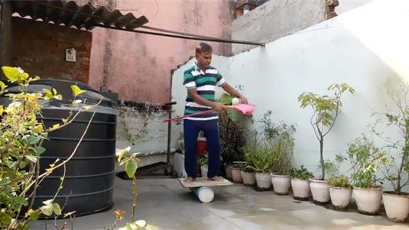 Suresh Gaur completed 254 consecutive baseball bounces on a broom while on a rola bola.