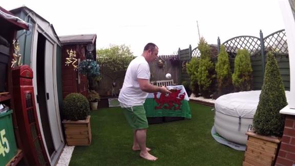 Mark Evans completed 557 consecutive baseball bounces on a glass bottle.