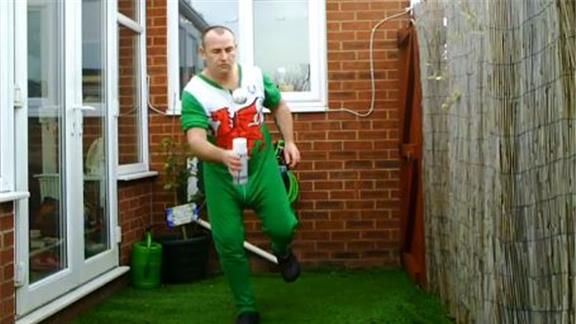 Mark E. bounced a baseball on a spray paint can 138 times while standing on one leg.