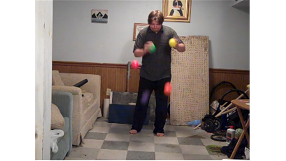 Brian Pankey completed 42 consecutive bounces juggling five four-inch bounce balls on the floor.