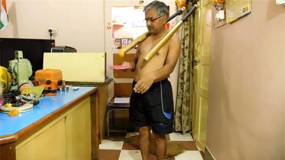 Suresh Gaur completed 1,140 consecutive bounces of a table tennis ball on a paddle while balancing two baseball bats on his shoulders.