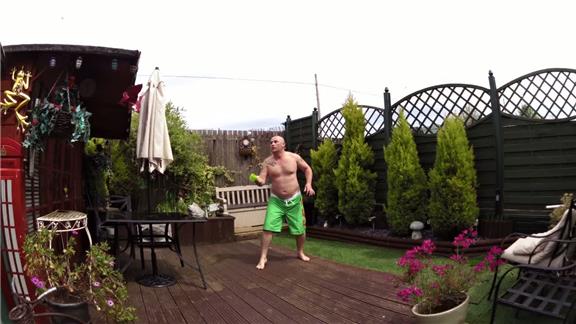 Mark Evans bounced a table tennis ball 30 times, alternating between base and inside of a coffee mug.