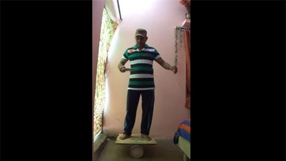 Suresh Gaur bounced a table tennis ball 893 times on a table tennis paddle while balancing on a rola bola.