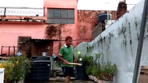 Suresh Gaur bounced a tennis ball 64 times on the barrel of his baseball bat.