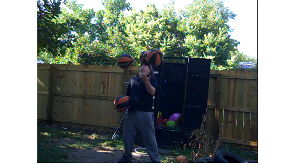 Brian Pankey caught three juggled basketballs 14 times while having one basketball balanced on his forehead.