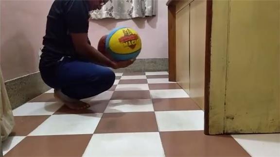 Suresh Gaur dribbled two basketballs 412 times with one hand while sitting on his toes.