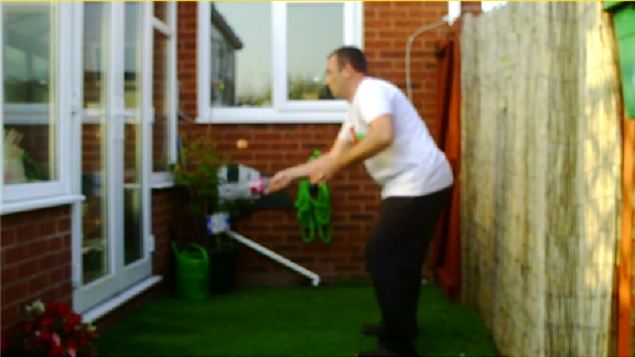 Mark E. bounced an egg eight times in a row on an empty plastic bottle.