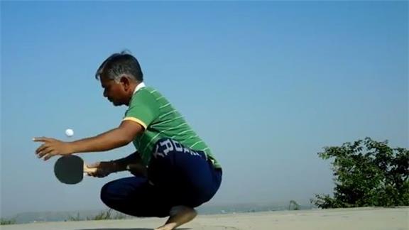 Suresh Gaur bounced a golf ball 15 times on alternate sides of a table tennis paddle while sitting on toes of his right foot.