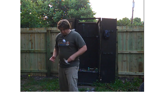 Brian Pankey bounced a golf ball on a claw grip hammer, alternating from the head to the side, 42 times.
