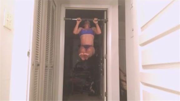 Alicia Weber performed 28 consecutive L pull-ups in one minute.
