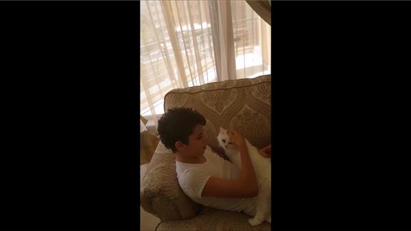 Ramy M. pet his cat 400 consecutive times.