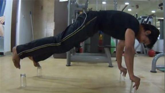 And yaa, to all those guys who are commenting - let me tell you that these are the only way to perform push-ups if you do it on something so delicate inorder to maintain your body weight, correct posture and even perform push-ups, try this, i bet you would never be able to accomplish even a "push-up" on glasses, before commenting that these are not complete push-ups, look at the way he performed.....bravo! You rock Rajesh, ignore them!