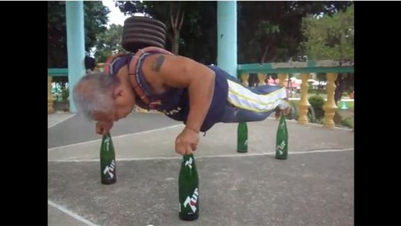 Most Consecutive Push-Ups Performed On Four Soda Bottles With 50-Pound Weight On Back