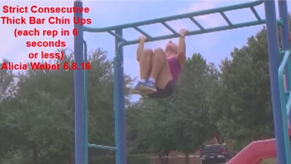 Alicia Weber performed 46 consecutive strict chin-ups on a thick bar.