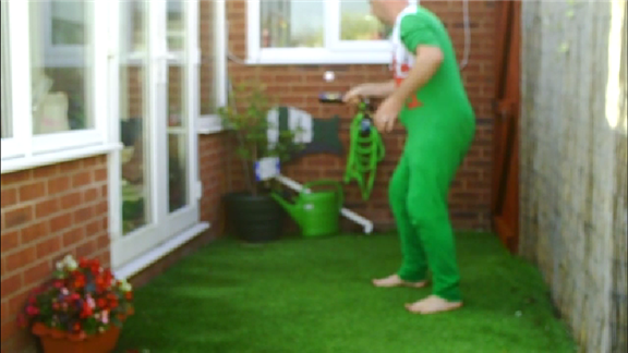 Mark E. bounced a table tennis ball on an empty beer bottle 29 times in a row.